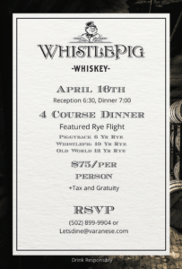 WhistlePig Bourbon Dinner